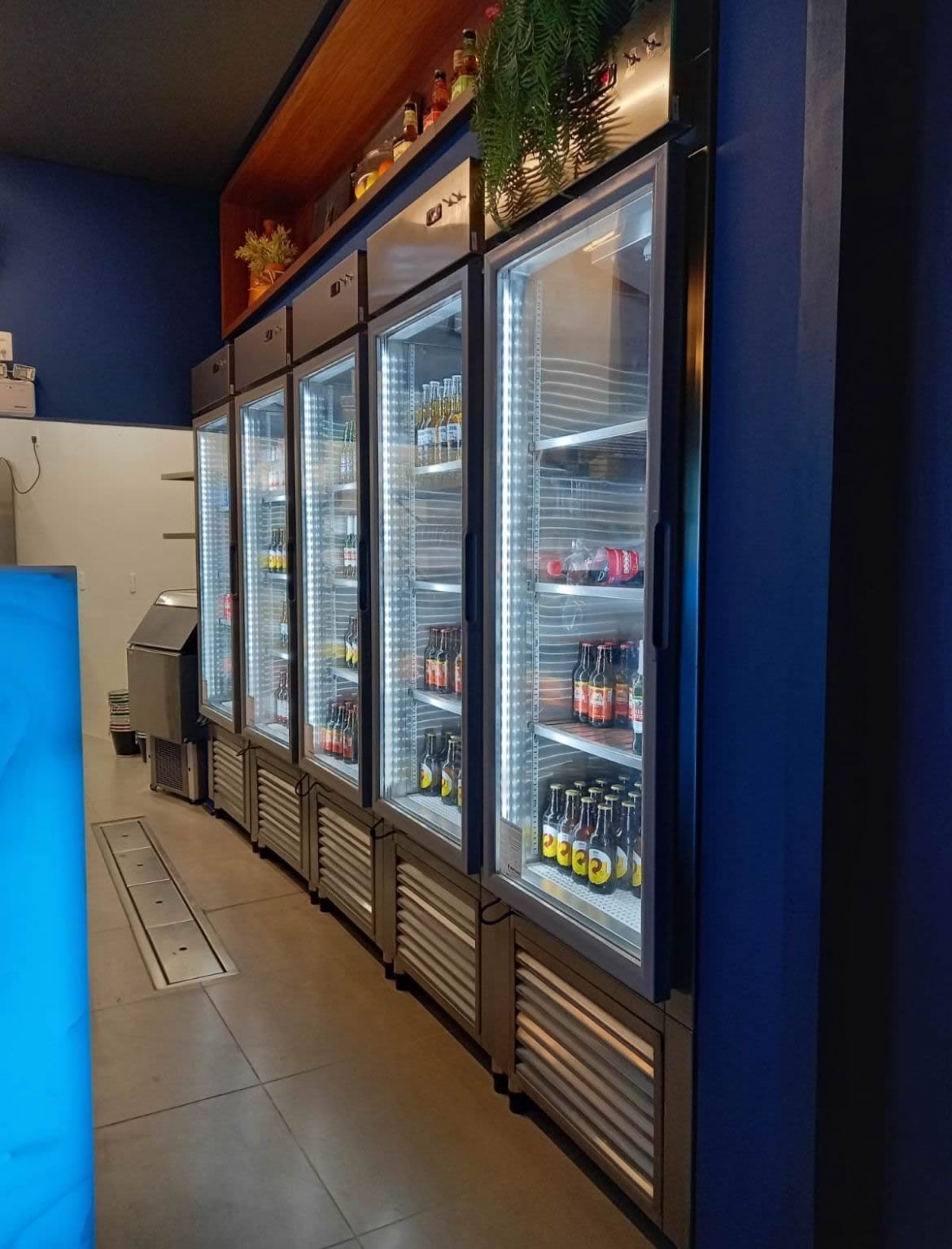 Portas de vidro com excelente visibilidade dos produtos.